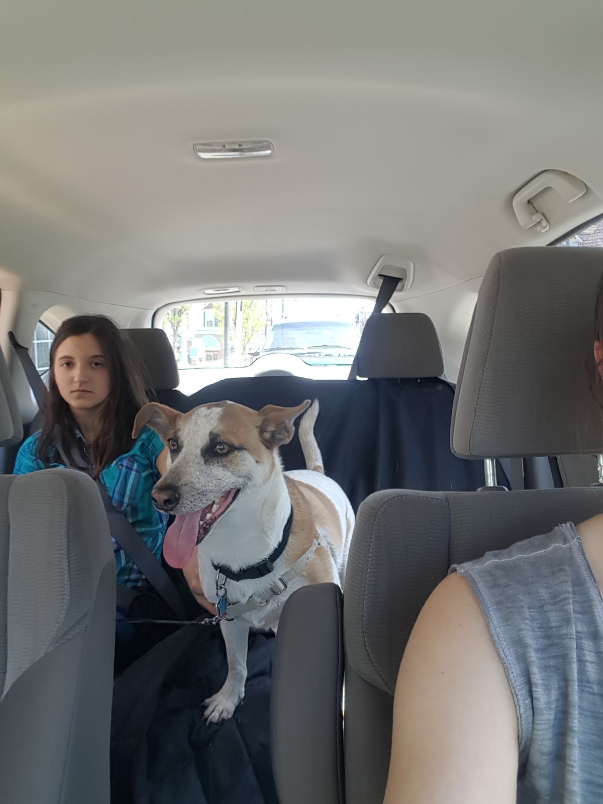 In a better mood now that you've puked after we got to the aquarium (you poor thing!)